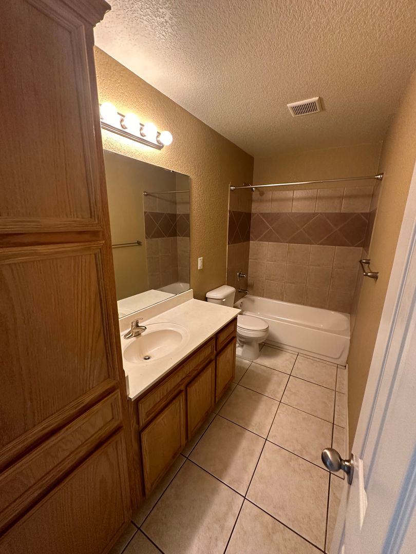 Take a look at this rare 3 bed 2 bath duplex, located on a quiet cul-de-sac with a huge back yard! With tile flooring throughout, this partially open floor plan features the kitchen overlooking the living area. This home boasts spacious bedrooms, large bathrooms with plenty of cabinet space, and a private garage. Centrally and conveniently located to schools and businesses. Available now, call today!